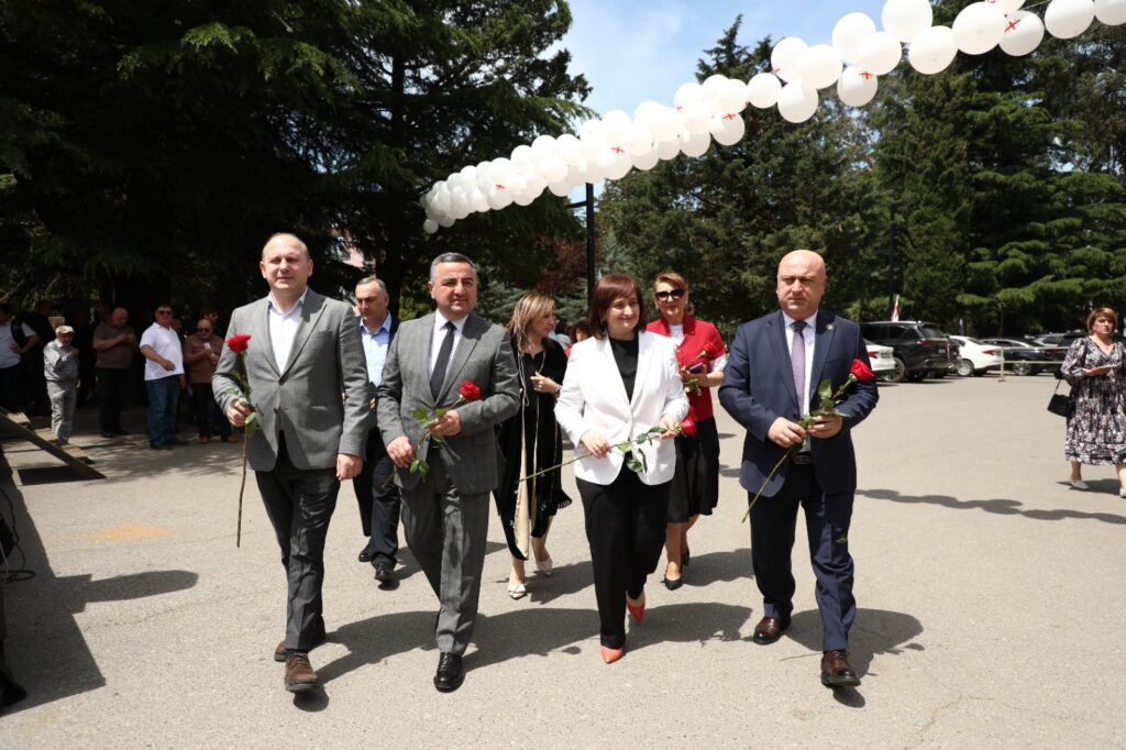 საზეიმო პროგრამა ხელვაჩაურის მუნიციპალიტეტის ადმინისტრაციული შენობის მიმდებარედ არსებულ სკვერში მემეორიალის შემკობით დაიწყო.