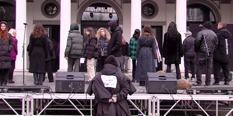 მსახიობები საპროტესტო მანიფესტის გასაჯაროებისთვის ემზადებიან.