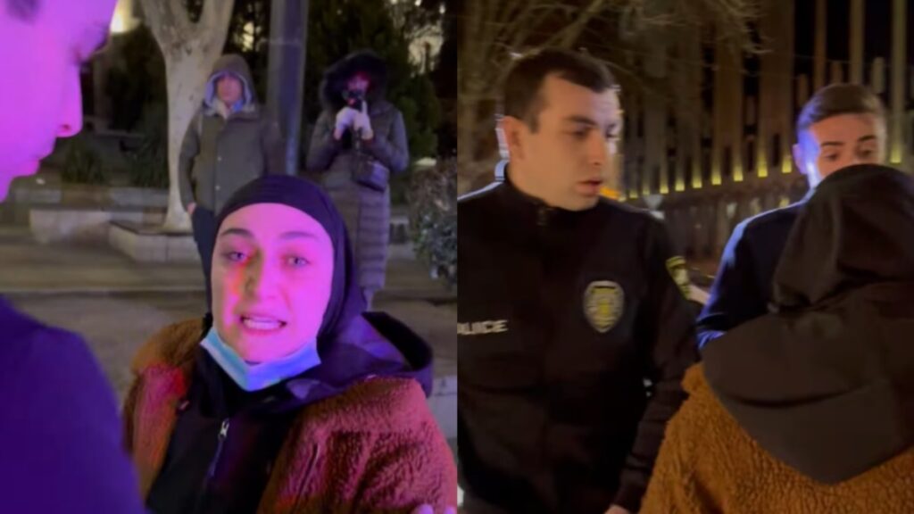 წუხელ გავრცელებულ კადრებში ჩანს, რომ მარიამ მეყანწიშვილი საპატრულო პოლიციის წარმომადგენლებს ესაუბრება, რა დროსაც ერთ-ერთი პოლიციელი მას ეუბნება: „გითხარით და ვერ იგებთ, დაკავებული ბრძანდებით“.