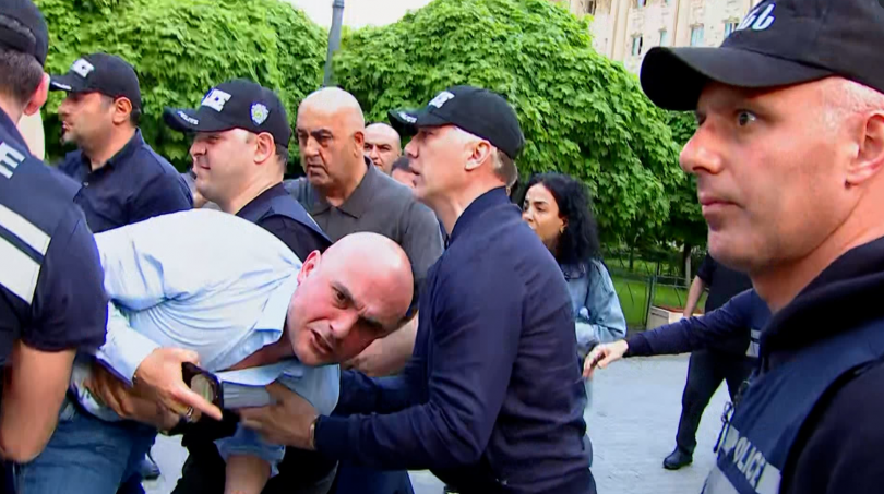 ხმაური სხვიტარიძის პროცესზე — საქალაქო სასამრთლოსთან პოლიციამ ერთი პირი დააკავა