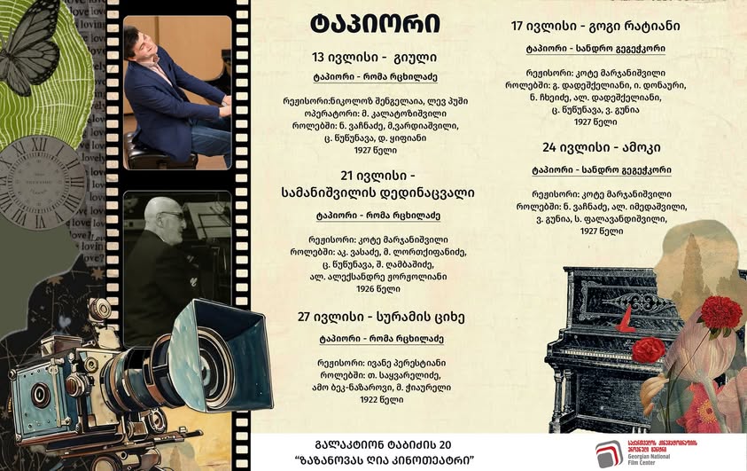 13-27 ივლისს, 21:00-ზე “ზაზანოვას ღია კინოთეატრში” გაიმართება ქართული კინომემკვიდრეობის უხმო ფილმების საჯარო ჩვენება ცოცხალი მუსიკის თანხლებით.