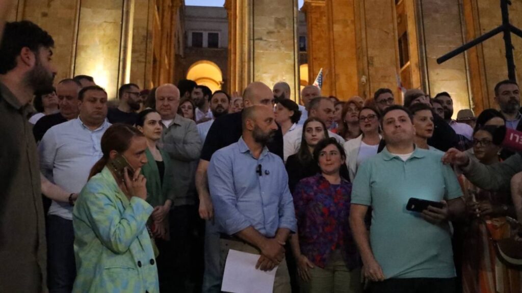 პარლამენტის წინ სიტყვით გამოსვლისას, პოლიტიკურმა პარტიებმა აღნიშნეს, რომ რეჟიმს უპირისპირდებიან და თვლიან, რომ სტაბილურობისთვის მთავარი საფრთხე ბიძინა ივანიშვილია.