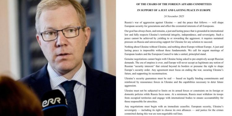 20 ევროპული ქვეყნის პარლამენტის საგარეო საქმეთა კომიტეტების ხელმძღვანელებმა ერთობლივი განცხადება გაავრცელეს, რომელშიც -ს მიერ სამშვიდობო გეგმას ეხმაურებიან. მათი თქმით, “მშვიდობა ვერ მიიღწევა აგრესორის მიმართ დათმობებით ან აგრესორისადმი ჯილდოებით”.