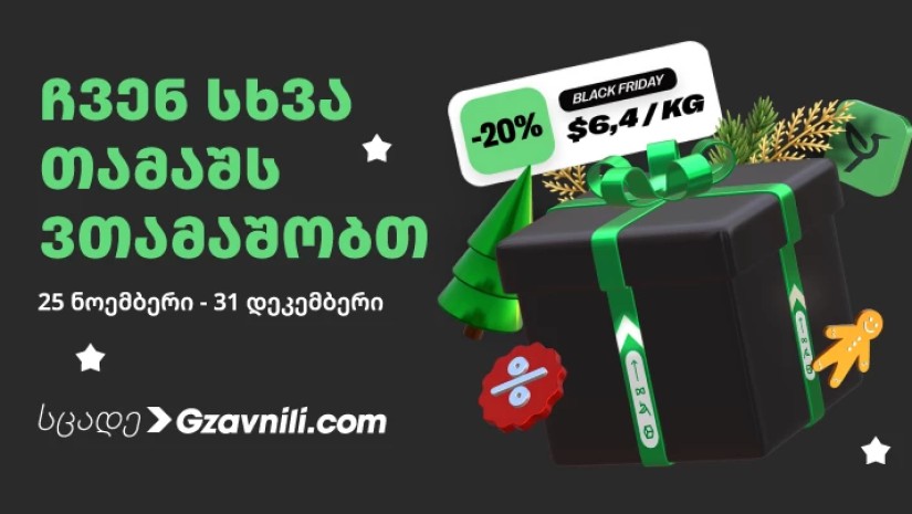 25 ნოემბრიდან, შავ პარასკევთან დაკავშირებით ამანათების გადაზიდვისა და მიწოდების ახალი პლატფორმა Gzavnili.com მომხმარებელს საჰაერო გადაზიდვებზე 20% ფასდაკლებებს სთავაზობს. აქციის პერიოდში 1 კილოგრამის ფასი მხოლოდ $6.4 იქნება.