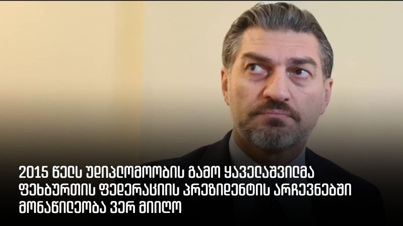 ფედერაციის არჩევნებში მონაწილეობა ვერ მიიღო, თუმცა 2016 წელს მიხეილ ყაველაშვილი “ქართული ოცნების” საარჩევნო სიაში აღმოჩნდა და პარლამენტის წევრიც გახდა. კანონმდებლობის თანახმად, უმაღლესი განათლების ქონა არც პარლამენტის წევრს მოეთხოვება.