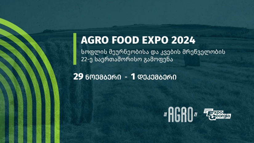 29 ნოემბერიდან 1 დეკემბრის ჩათვლით, „ექსპოჯორჯია“-ს ორგანიზებით სოფლის მეურნეობის და კვების მრეწველობის, საერთაშორისო გამოფენა Agro/Food/Drink/Tech/Expo 2024 გაიმართება!