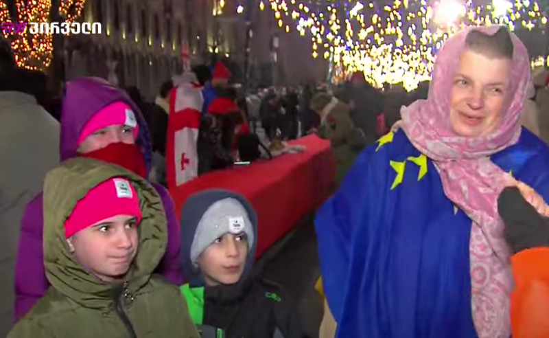 დაკავებული ცხინვალის თეატრის მსახიობის, ვეფხია კასრაძის ცოლი და შვილები ახალ წელს რუსთაველის გამზირზე ხვდებიან.