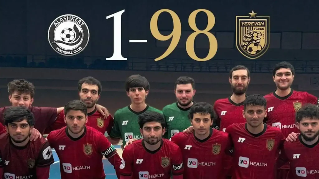 ფუტსალში სომხეთის ჩემპიონატზე „ერევანმა“ უმაღლესი ლიგის დებიუტანტი „ალაშკერტი“ გასაკვირი ანგარიშით, 98:1 დაამარცხა.