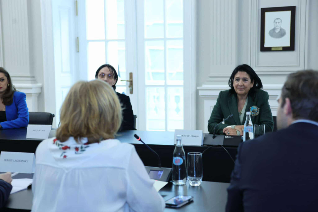 საქართველოს პრეზიდენტი, სალომე ზურაბიშვილი ორბელიანების სასახლეში ევროპარლამენტარებთან შეხვედრას მართავს.