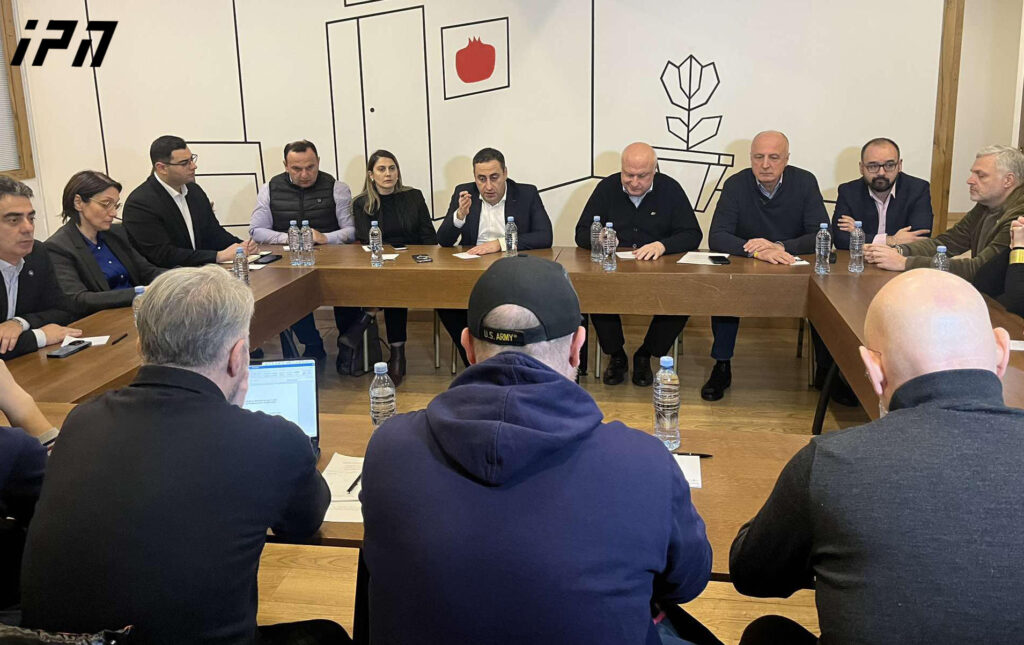 ოთხი ოპოზიციური პოლიტიკური პარტიის ლიდერები პრეზიდენტის წარმომადგენელთან ერთად სამუშაო შეხვედრას მართავენ.