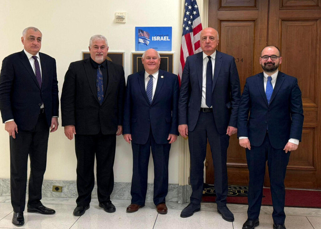 “ძლიერი საქართველოს” ლიდერები მამუკა ხაზარაძე, ბადრი ჯაფარიძე და გრიგოლ გეგელია კონგრესმენებს რონალდ ესტესს და კეროლ მილერს შეხვდნენ.