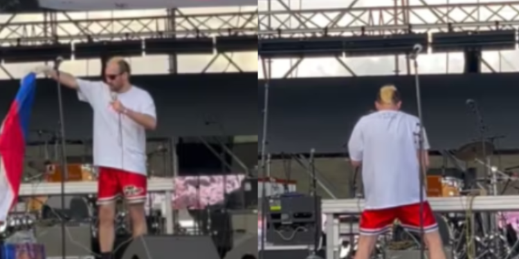 გეწაძემ სცენაზე რუსული დროშა პაკეტში მოათავსა და ზედ მოშარდვის იმიტიაცია გააკეთა, რამაც რუსული მედიის აღშფოთება გამოიწვია.