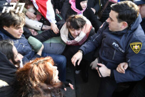 სახალხო დამცველის აპარატის თანამშრომლები ადგენენ რუსთაველის გამზირზე აქციის დროს დაკავებულ