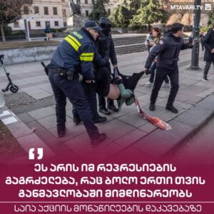 “რუსთაველის გამზირზე პოლიცია მშვიდობიან დემონსტრანტებს აკავებს. 29 დეკემბერს, დღის საათებში