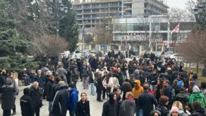 თბილისის საქალაქო სასამართლოს ეზოში და შიდა ტერიტორიაზე ხმაურია. ადგილზე შეკრებილები