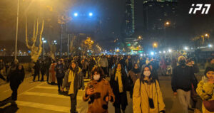 აქციის მონაწილეები გმირთა მოედნის მიმართულებით მსვლელობას მართავენ. მომიტინგეები ადგილზე აგებენ