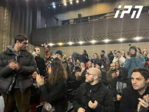 ხელოვანები და სახელოვნებო სფეროს წარმომადგენლები თუმანიშვილის თეატრიდან საზოგადოებრივ მაუწყებელთან მივიდნენ