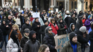 „დეზერტირების ბაზართან“ შეკრებილმა სტუმარ-მასპინძლობის სფეროს წარმომადგენლებმა საპროტესტო მსვლელობით რუსთაველის გამზირზე,