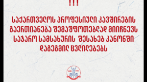 საქართველოს პროფკავშირების გაერთიანება ეხმაურება „ქართული ოცნების“ მიერ დაგეგმილ ცვლილებებს საჯარო