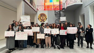 ბათუმის ხელოვნების უნივერსიტეტის სტუდენტები და თანამშრომლები, ამავე უნივერსიტეტის დეკანისა და ოთხი სტუდენტის დაკავებას აპროტესტებენ