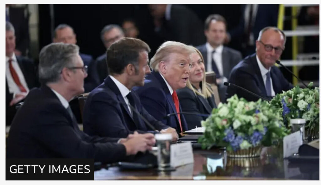 BBC-ი უკრაინულ წყაროებზე დაყრდნობით წერს, რომ თეთრ სახლში, აშშ-ის პრეზიდენტის, დონალდ ტრამპის ევროპელ ლიდერებთან შეხვედრა დასრულდა.