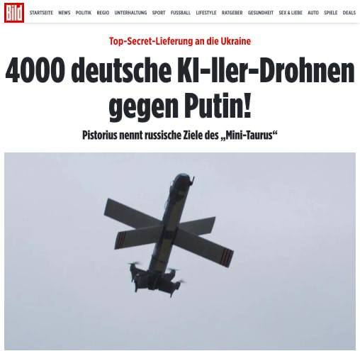 გამოცემა Bild-ის ინფორმაციით, გერმანიის თავდაცვის სამინისტრო უკრაინას 4000 უპილოტო საფრენ აპარატს გადასცემს.