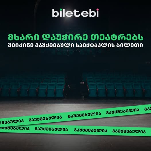 აღნიშნული სპექტაკლები არ ჩატარდება, შესაბამისად, თქვენ მიერ შეძენილი ბილეთები – სიმბოლური, საქველმოქმედო ხასიათისაა, რომლითაც ფინანსურად ეხმარებით თეატრის მთელ კოლექტივს” | წერს Biletebi.ge სოციალურ ქსელში
