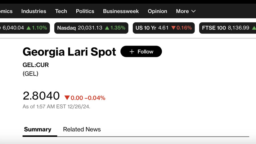 Bloomberg-ზე ერთი დოლარი 11:00 საათისთვის 2.8040 ლარად ივაჭრება.