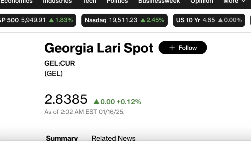 Bloomberg-ზე ერთი დოლარი 11:00 საათისთვის 2.8385 ლარად ივაჭრება.