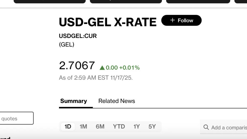 Bloomberg-ის სავაჭრო პლატფორმაზე 12:00 საათისთვის ერთი დოლარი 2.7067 ლარად ივაჭრება.