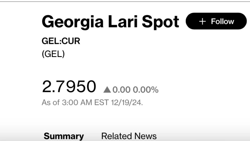 Bloomberg-ის სავაჭრო პლატფორმაზე 12:00 საათისთვის ერთი დოლარი 2.7950 ლარად ივაჭრება.