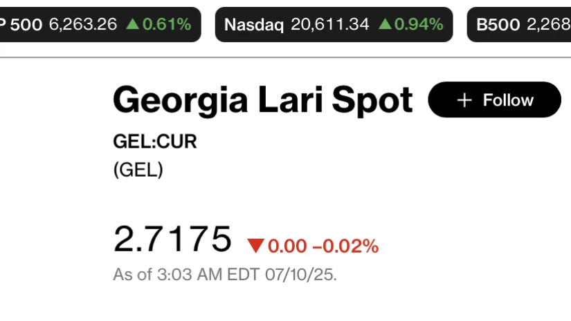 Bloomberg-ის სავაჭრო პლატფორმაზე 11:00 საათისთვის ერთი დოლარი 2.7175 ლარად ივაჭრება.