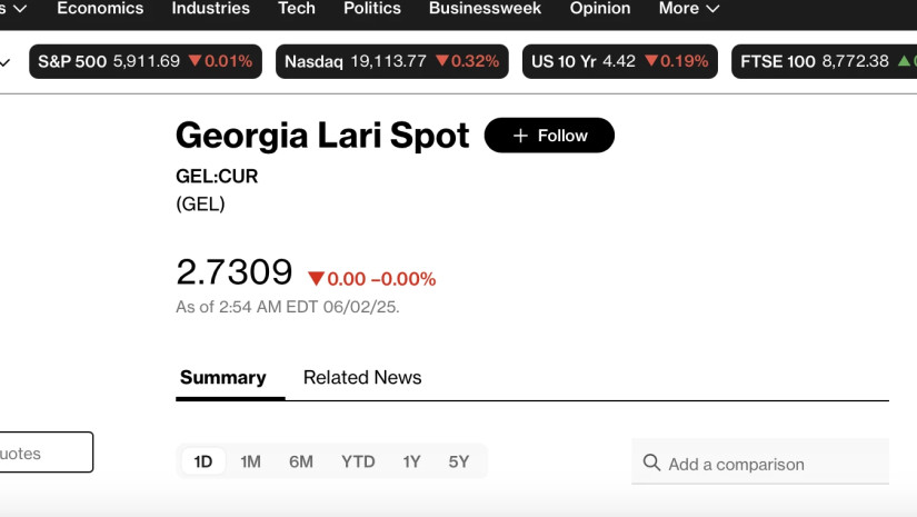 Bloomberg-ის სავაჭრო პლატფორმაზე 11:00 საათისთვის ერთი დოლარი 2.7309 ლარად ივაჭრება.