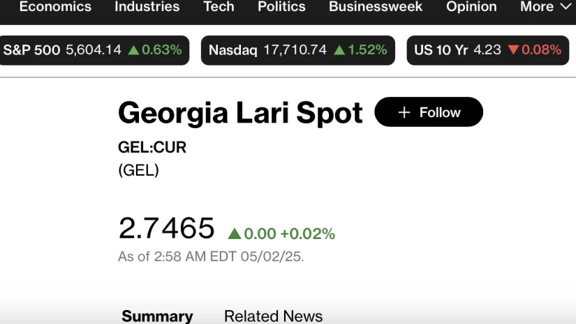 Bloomberg-ის სავაჭრო პლატფორმაზე 11:00 საათისთვის ერთი დოლარი 2.7465 ლარად ივაჭრება.