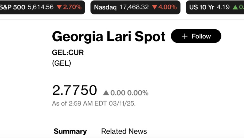 Bloomberg-ის სავაჭრო პლატფორმაზე 11:00 საათისთვის ერთი დოლარი 2.7750 ლარად ივაჭრება.