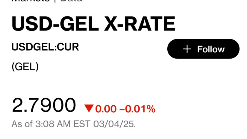 Bloomberg-ის სავაჭრო პლატფორმაზე 12:00 საათისთვის ერთი დოლარი 2.7900 ლარად ივაჭრება.