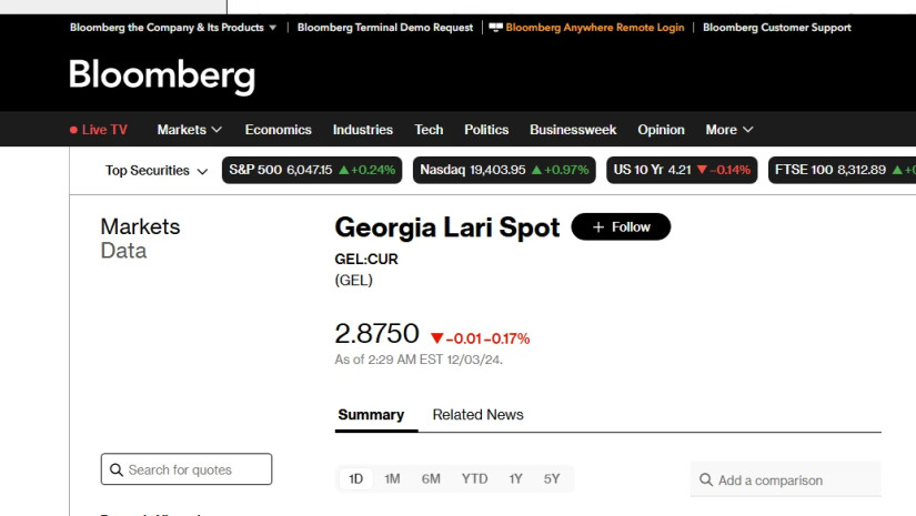 აღსანიშნავია, რომ Bloomberg-ზე ეროვნული ვალუტის სავაჭრო კურსი 2.88-ით გაიხსნა.
