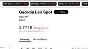 Bloomberg-ის სავაჭრო პლატფორმაზე 11:00 საათისთვის ერთი დოლარი 2.7718 ლარად ივაჭრება.