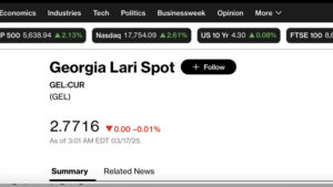 Bloomberg-ის სავაჭრო პლატფორმაზე 11:00 საათისთვის ერთი დოლარი 2.7716 ლარად ივაჭრება.