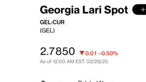 Bloomberg-ის სავაჭრო პლატფორმაზე 11:00 საათისთვის ერთი დოლარი 2.7850 ლარად ივაჭრება.