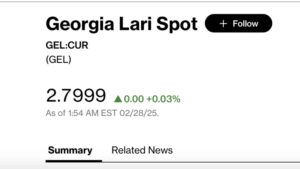 Bloomberg-ის სავაჭრო პლატფორმაზე 11:00 საათისთვის ერთი დოლარი 2.7999 ლარად ივაჭრება.