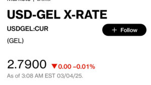 Bloomberg-ის სავაჭრო პლატფორმაზე 12:00 საათისთვის ერთი დოლარი 2.7900 ლარად ივაჭრება.
