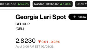 Bloomberg-ის სავაჭრო პლატფორმაზე 12:00 საათისთვის ერთი დოლარი 2.8230 ლარად ივაჭრება.