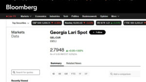 Bloomberg-ის სავაჭრო პლატფორმაზე 14:45 საათისთვის ერთი დოლარი 2.7948 ლარად ივაჭრება.