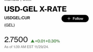 Bloomberg-ის სავაჭრო პლატფორმაზე 11:00 საათისთვის ერთი დოლარი 2.7625 ლარად ივაჭრება