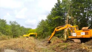 შპს „საქართველოს მელიორაცია“ რიონის მარცხენა სანაპიროს დამშრობი მასივის გაწმენდით სამუშაოებს