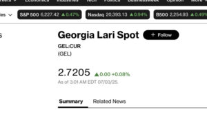 Bloomberg-ის სავაჭრო პლატფორმაზე 11:00 საათისთვის ერთი დოლარი 2.7205 ლარად ივაჭრება.