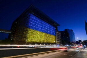 ევროკავშირის საბჭოს შენობა, უკრაინის დამოუკიდებლობის დღეს, უკრაინის ეროვნული დროშის ფერებში