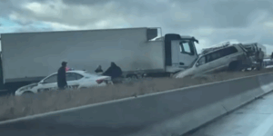 ავტოსაგზაო შემთხვევა ავტობანზე – ერთმანეთს ტრაილერი და მსუბუქი ავტომობილები შეეჯახნენ.