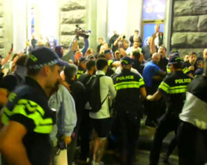 მელიქიშვილის გამზირზე, კახა კალაძის საარჩევნო შტაბთან ხმაური და დაპირისპირებაა